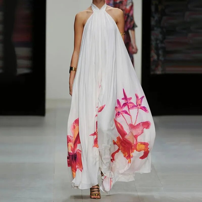 Bohemian Backless Floral Print Fashion Sexy Sleeveless Backless Party Maxi Dress