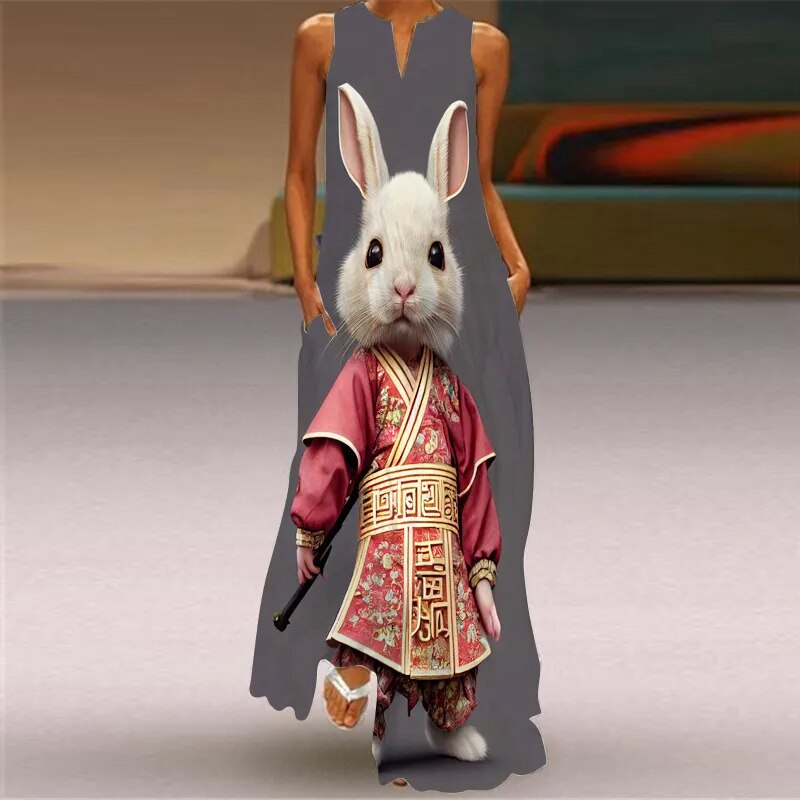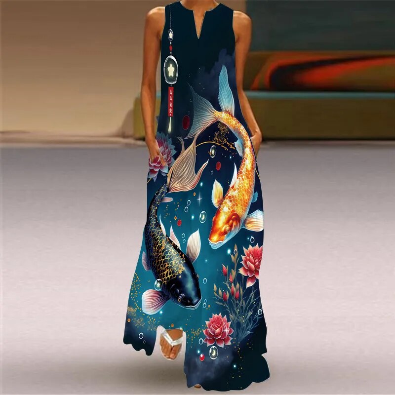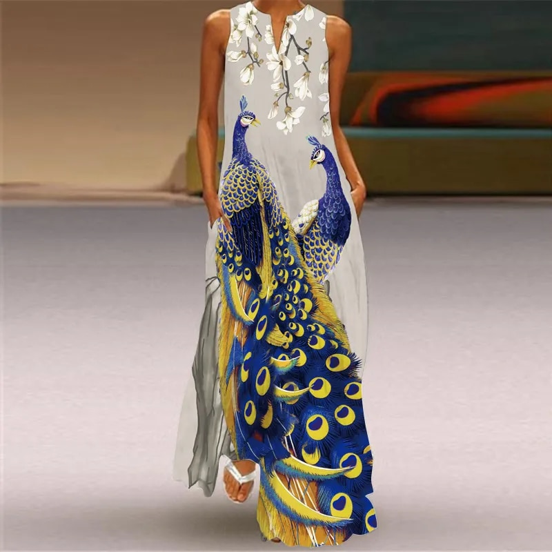 Fashion Sleeveless V Neck Casual Elegant Flower Print Vintage Maxi Dress