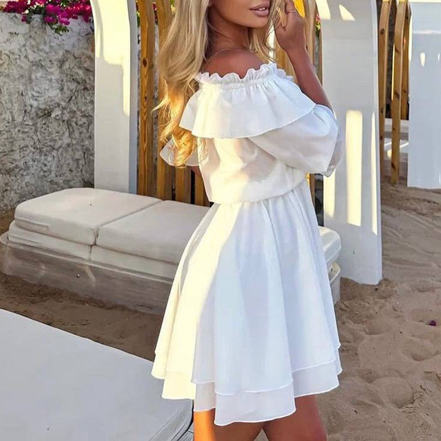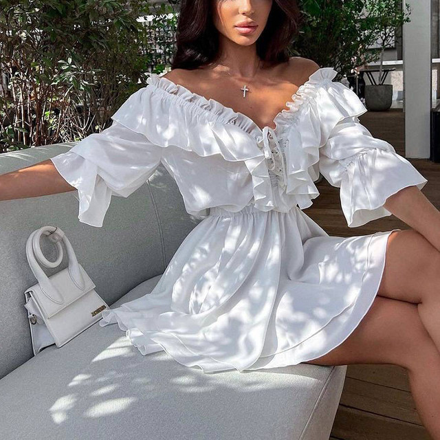 2022 New Style Women's Clothing European American Cropped Dress Front Button Halter Neck Back Tied Ruffle Sleeveless Dress