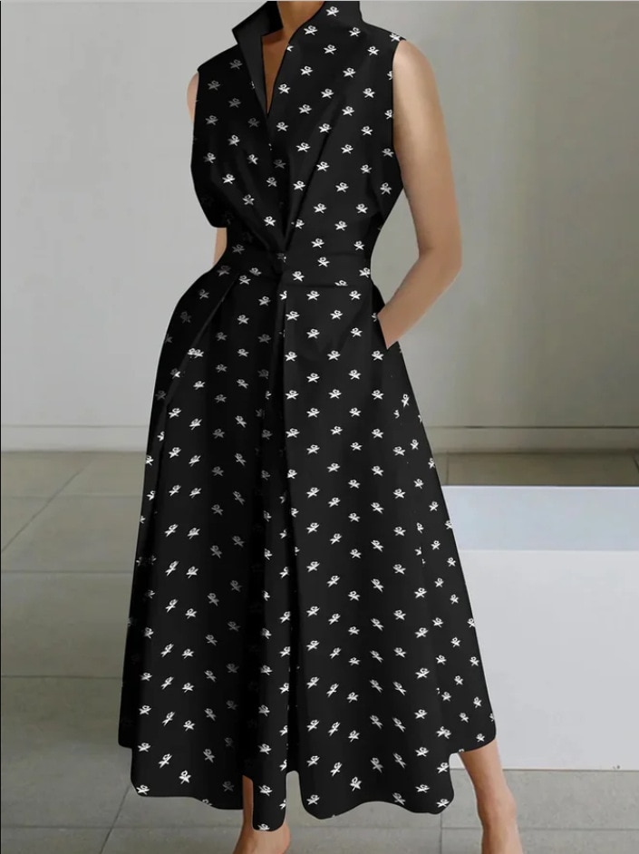 Women's Elegant Party Fashion Polka Dot Print Button  Maxi Dress