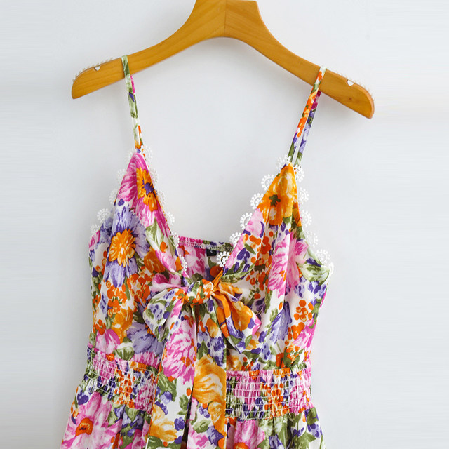 2022 New Style Women's Clothing European American Cropped Dress Front Button Halter Neck Back Tied Ruffle Sleeveless Dress